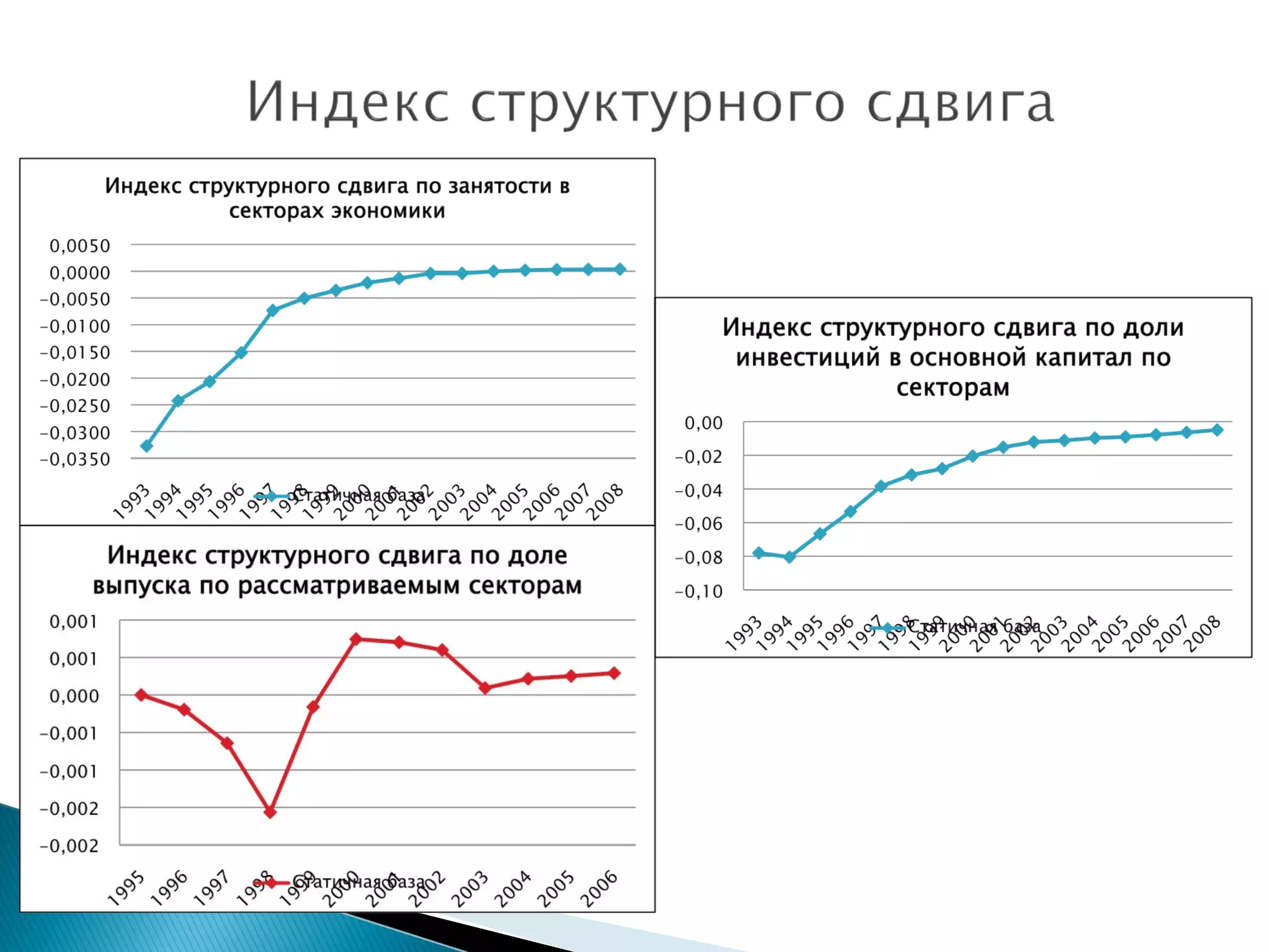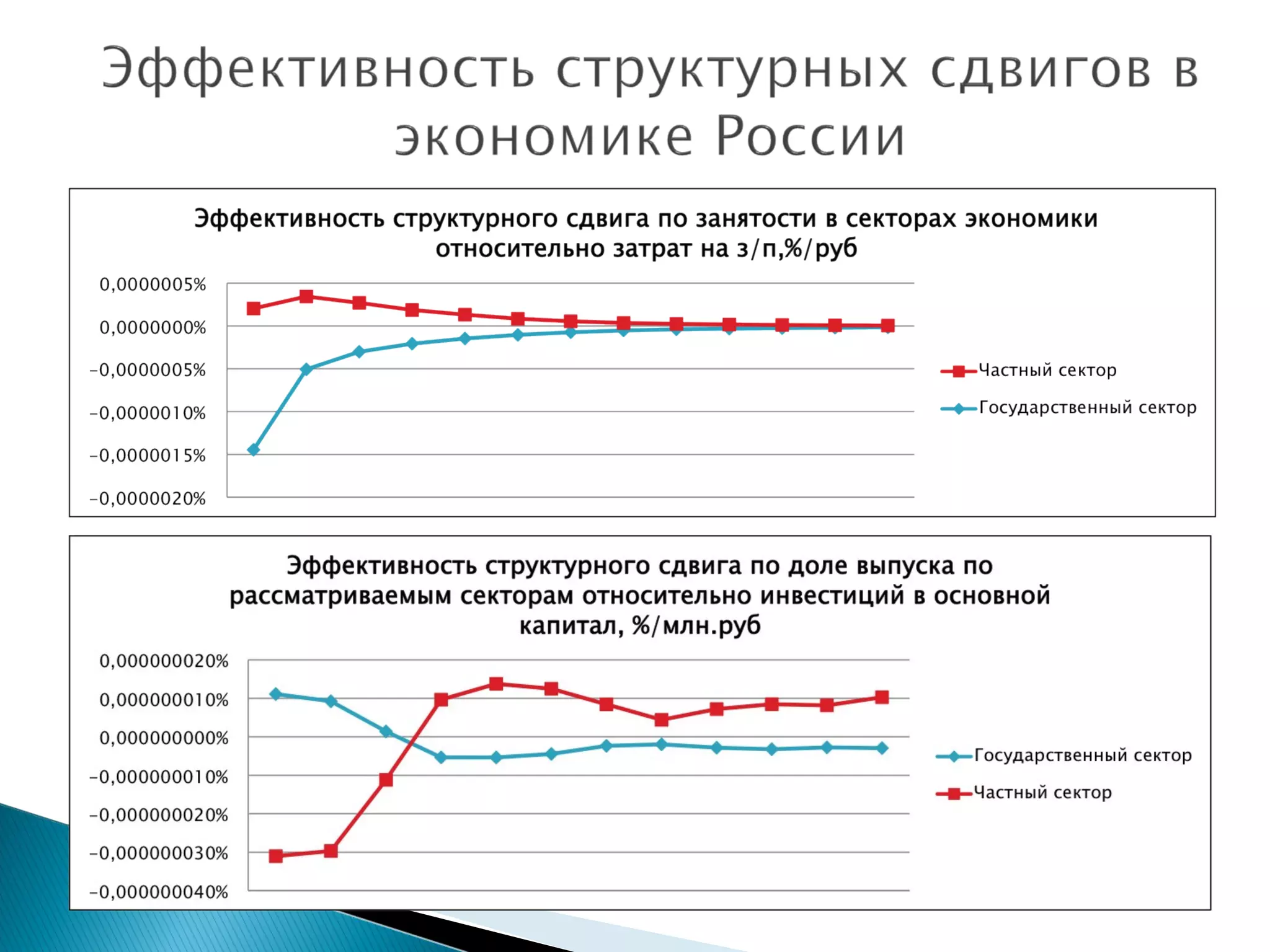 Документ представляет анализ динамики государственного сектора в России с 1996 по 2008 год, включая данные о ВВП и расходах консолидированного бюджета. Приведены показатели расходов бюджета к ВВП и уровень занятости в государственном секторе. Также рассматриваются индексы и эффективность структурного сдвига.