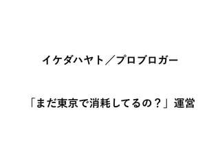 イケダハヤト/プロブロガー ! 「まだ東京で消耗してるの?」運営