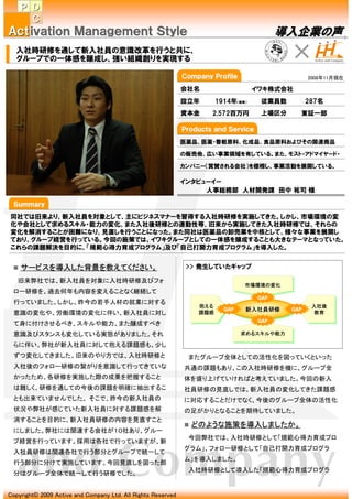同社では旧来より、新入社員を対象として、主にビジネスマナーを習得する入社時研修を実施してきた。しかし、市場環境の変化や会社として求めるスキル・能力の変化、また入社後研修との連動性等、旧来から実施してきた入社時研修では、それらの変化を解消することが困難になり、見直しを行うことになった。また同社は医薬品の卸売業を中核として、様々な事業を展開しており、グループ経営を行っている。今回の施策では、イワキグループとしての一体感を醸成することも大きなテーマとなっていた。これらの課題解決を目的に、「規範心得力育成プログラム」及び「自己打開力育成プログラム」を導入した。