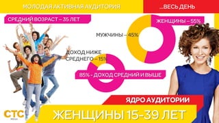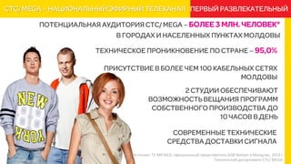 Документ представлен техническим департаментом стс/mega, основанным на данных AGB Nielsen в Молдове, и включает описание ряда положительных характеристик, таких как энергичность, оригинальность и позитивность. Повторяющееся упоминание источника подтверждает актуальность информации. Документ подчеркивает развлекательный и дружелюбный подход к контенту.