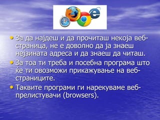 • За данајдеш и да прочиташ некоја веб-