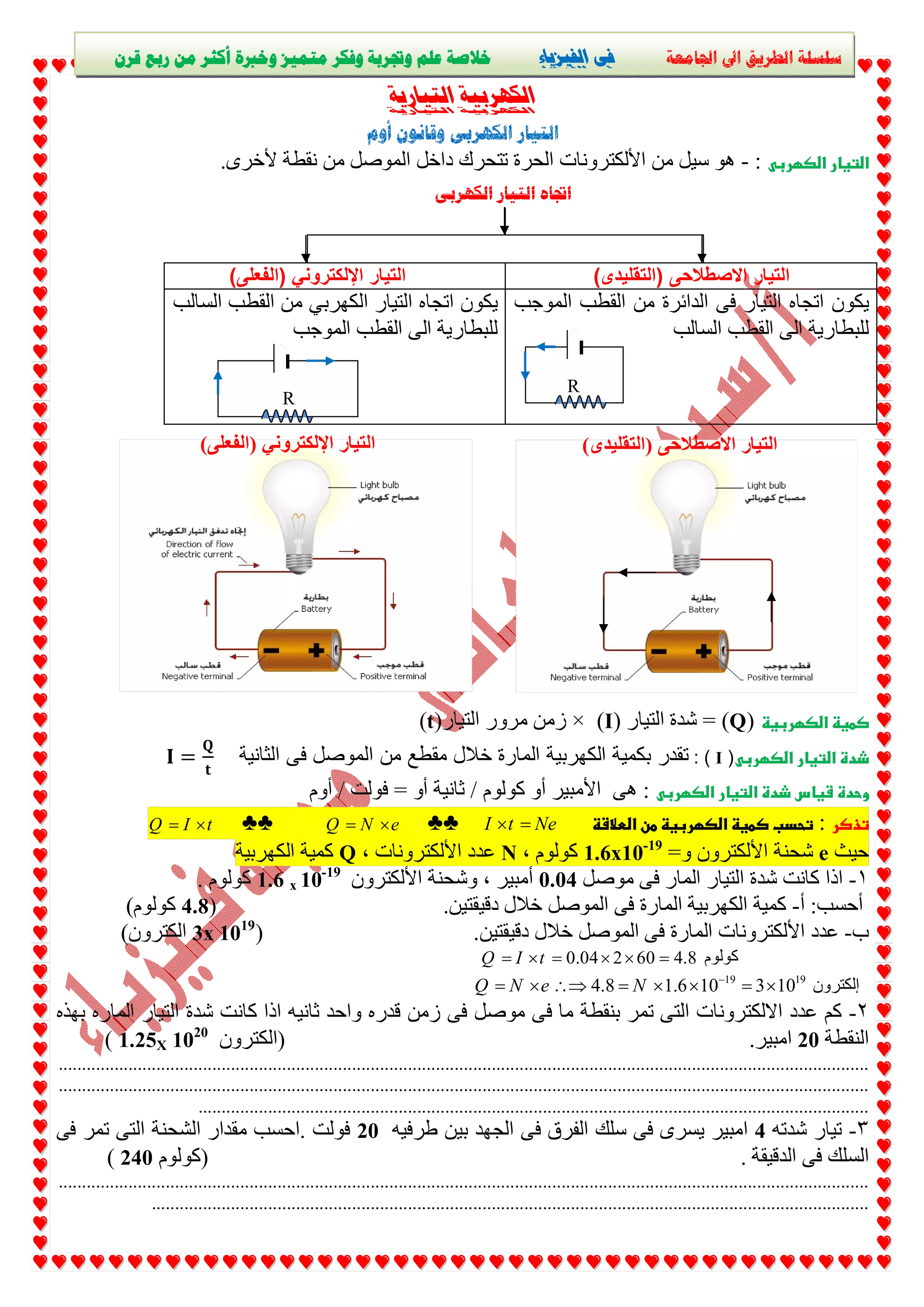تتناول سلسلة 'الطريق إلى الجامعة في الفيزياء' أساسيات الكهربية والتيار الكهربائي وقانون أوم. تشرح الوثيقة كيفية حساب شدة التيار، كمية الكهرباء المارة، والمقاومة الكهربائية، مع ذكر العوامل المؤثرة على هذه القيم. توفر الوثيقة أمثلة عملية لدعم الفهم، مما يعكس خبرة تمتد لأكثر من ربع قرن في هذا المجال.