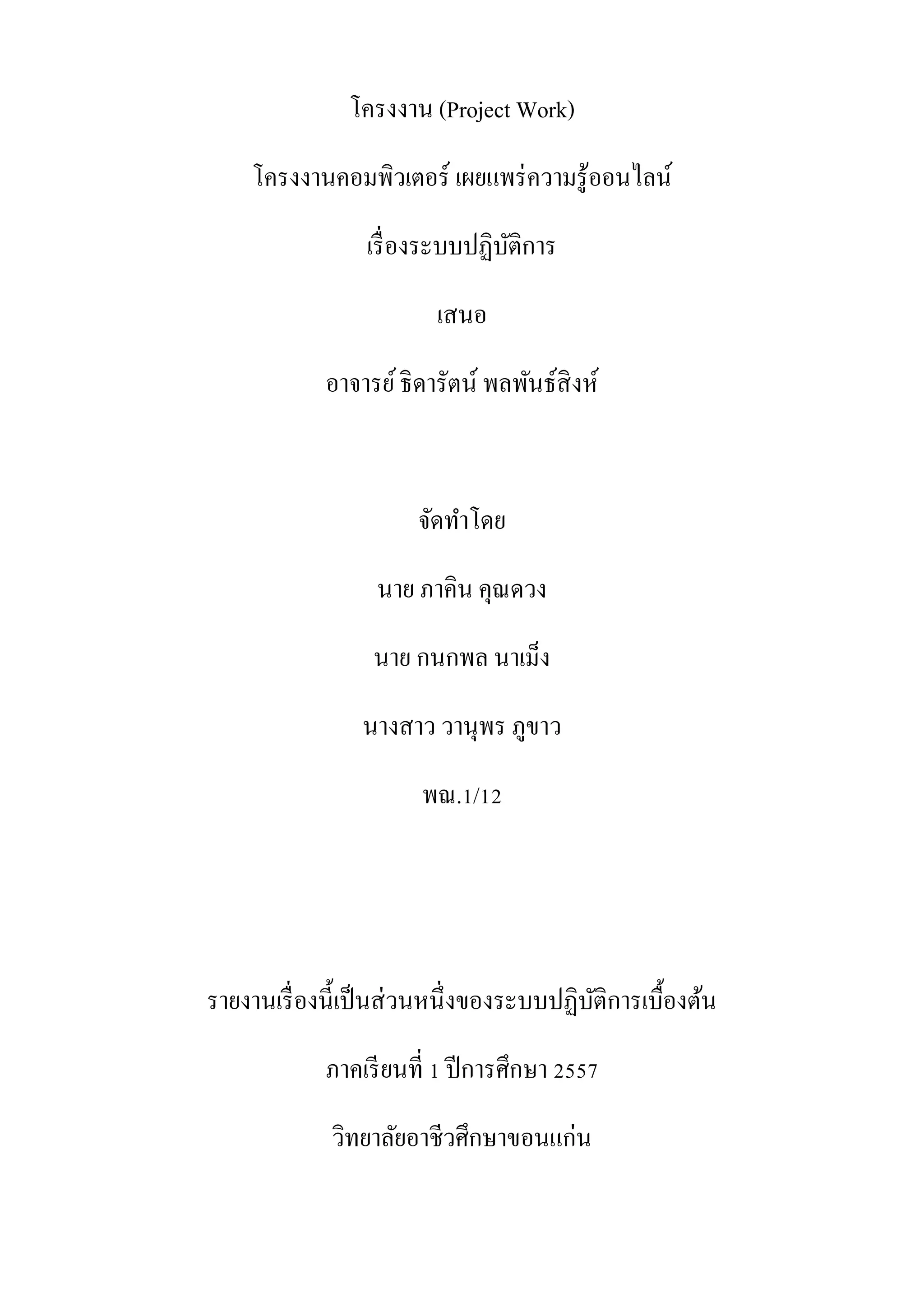 โครงงานคอมพิวเตอร์ เผยแพร่ความรู้ทางออนไลน์ เรื่องระบบปฏิบัติการ