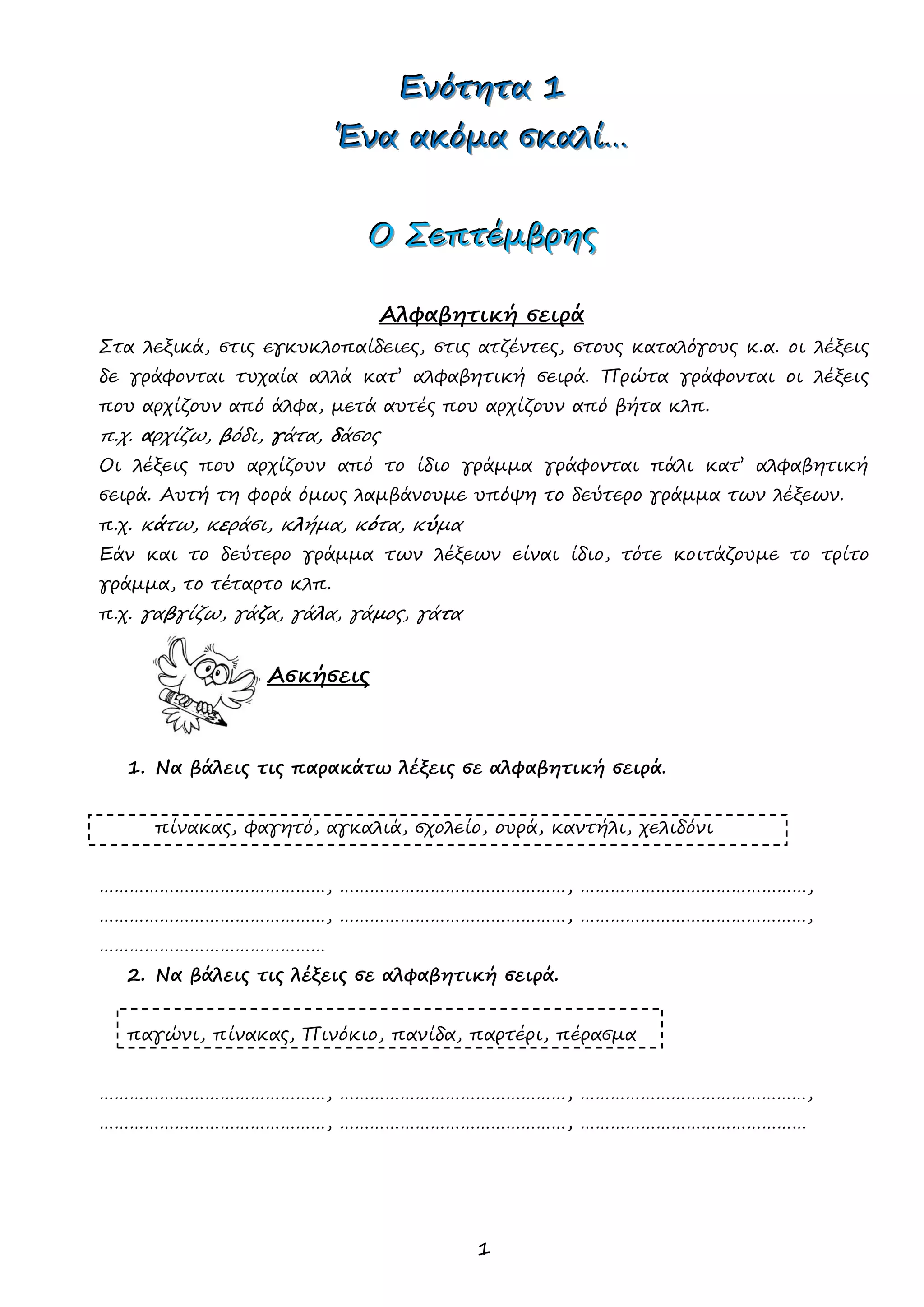 1. Να βάλεις τις παρακάτω λέξεις σε αλφαβητική σειρά.