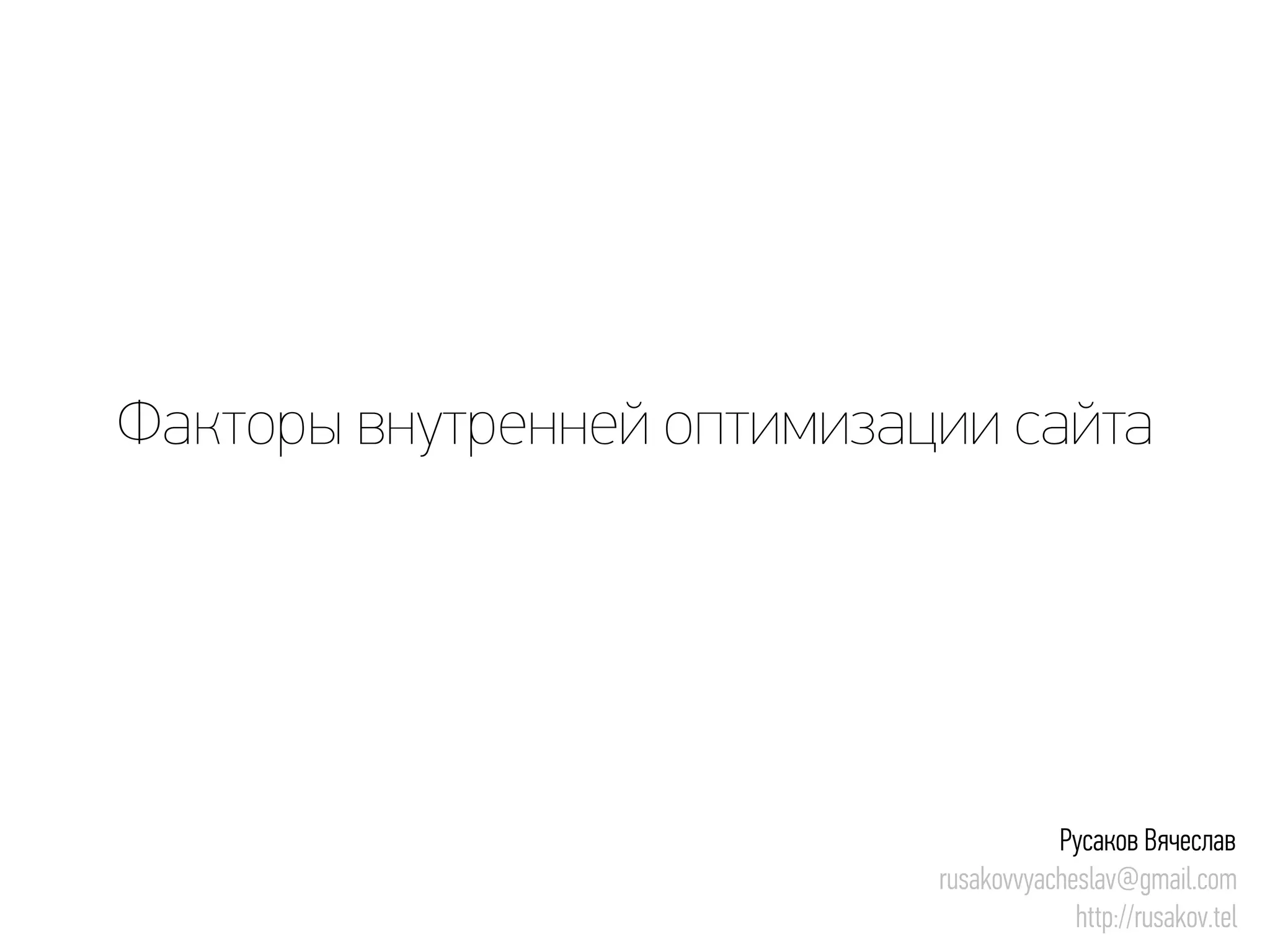 Документ охватывает ключевые факторы внутренней оптимизации сайта, включая технические аспекты, индексацию, структуру URL, контент и юзабилити. Подробно рассматриваются положительные и отрицательные факторы для улучшения SEO, такие как качественный контент, проблема дублирования и переоптимизации. Также упомянуты важные аспекты, такие как скорость загрузки страниц и наличие необходимых метатегов.