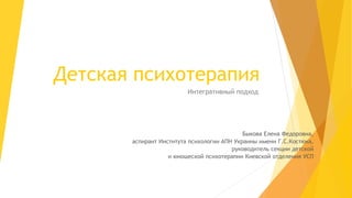 Документ рассматривает интегративный подход в детской психотерапии, подчеркивая важность специальной подготовки психотерапевтов для работы с детьми. Основное внимание уделяется особенностям коммуникации, необходимости создания безопасного терапевтического пространства и соблюдению юридических и этических стандартов. Терапевт должен учитывать уникальные потребности ребенка, используя невербальные методы и взаимодействие с родителями, при этом не полагаясь на свои собственные травмы или убеждения.