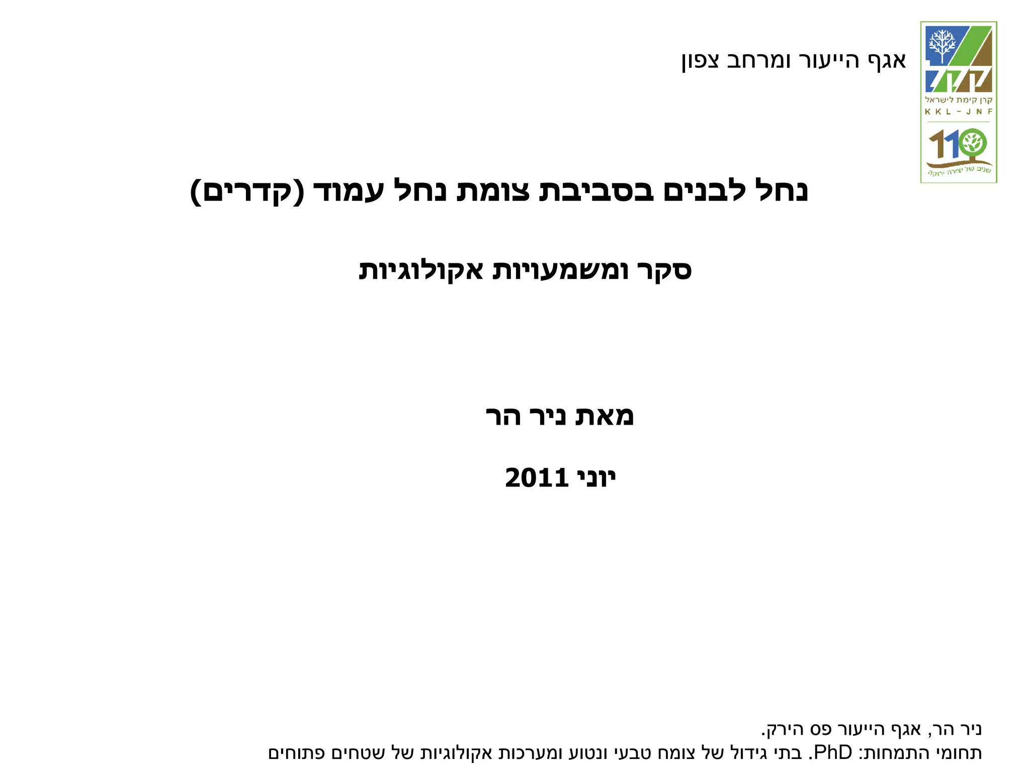 סקר אקולוגי נערך בנחל ליבנים בקרבת צומת נחל עמוד (קדרים) (2011) לצורך הכרת השטח בנסיון לשמרו בעת הקמת המחלף. תוארו טיפוסים של יער פתוח, בוסתן ודמוי סוואנה בבתי גידול של סביבות דולומיט, אבן גיר וקירטון