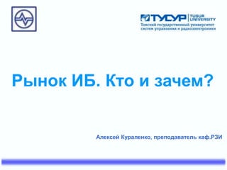 Документ описывает рынок информационной безопасности, его участников и роль различных организаций, таких как регуляторы, системные интеграторы и вендоры. Также обсуждаются тенденции и требования к специалистам в этой области, включая инженеров, администраторов и бизнес-специалистов. Выделяются ключевые направления развития, включая безопасность персональных данных, облачную и мобильную безопасность.