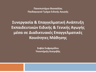 Ευφραιμίδου,Σ., & Καραγιαννίδθσ, Χ. (2012). Συνεργαςία και επαγγελματικι ανάπτυξθ εκπαιδευτικϊν Ειδικισ και Γενικισ Αγωγισ μζςα ςε δυνάμει διαδικτυακζσ κοινότθτεσ.8ο Πανελλινιο Συνζδριο με Διεκνι Συμμετοχι ςτισ Τεχνολογίεσ Πλθροφορίασ & Επικοινωνιϊν ςτθν Εκπαίδευςθ (HCICTE), Βόλοσ, Ελλάδα.
