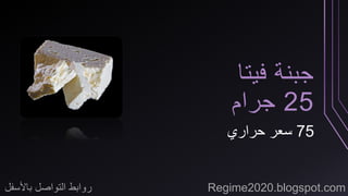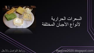 تتناول الوثيقة السعرات الحرارية لأنواع مختلفة من الأجبان، حيث يحدد المحتوى الحراري لكل نوع بناءً على 25 جرام. على سبيل المثال، تحتوي جبنة فيتا على 75 سعر حراري، بينما تحتوي جبنة بارميزان على 130 سعر حراري.