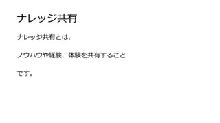 ナレッジ共有をする⽂文化が無いんだよね。 なんとかナレッジ共有を進めたい。