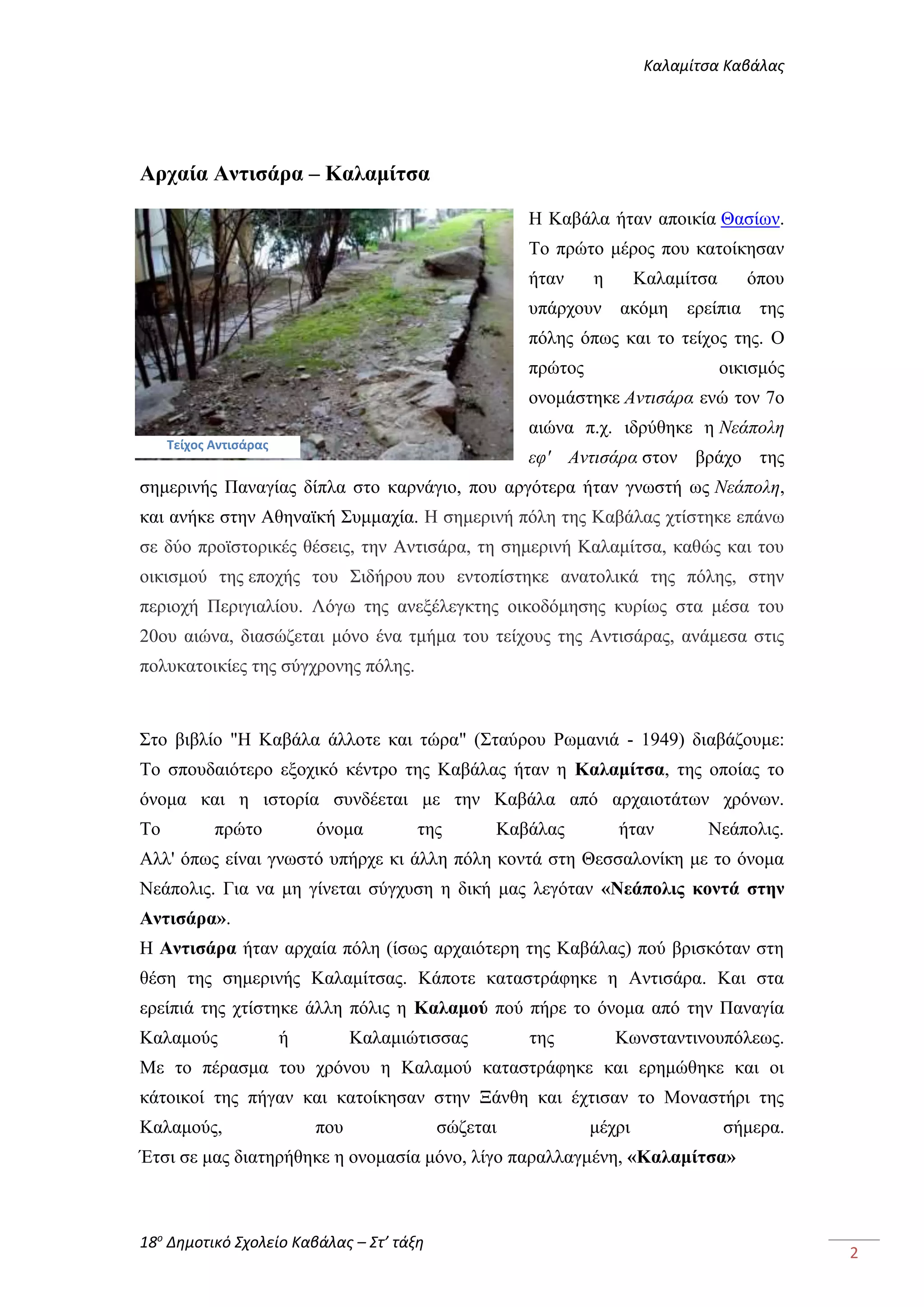θέση της σημερινής Καλαμίτσας. Κάποτε καταστράφηκε η Αντισάρα. Και στα