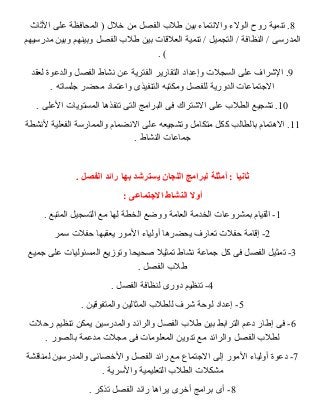 وقاد تفهم كل رائد فصل دوره وما هى محتويات حصة الريادة وقاد تم تسليم كل رائد فصل