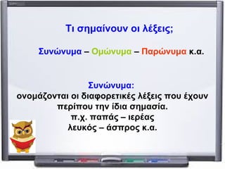 Συνώνυμα – Ομώνυμα – Παρώνυμα κ.α.