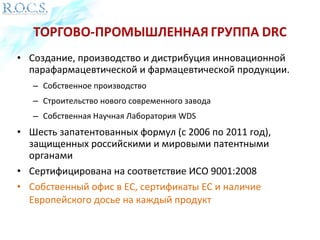 Документ описывает продукцию компании, занимающейся созданием, производством и дистрибуцией парафармацевтической и фармацевтической продукции, включая зубные пасты для детей и взрослых. Уделено внимание разработке безопасных формул зубных паст с учетом возрастных особенностей пользователей и наличию запатентованных технологий. Также подчеркиваются высокие стандарты качества и сертификации продукции, включая соответствие международным требованиям.