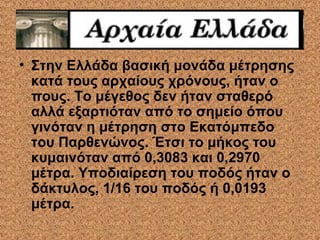 μέτρα. Υποδιαίρεση του ποδός ήταν ο