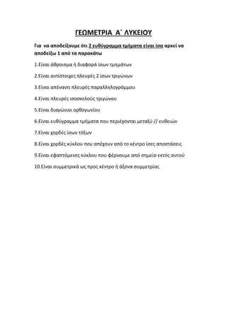 ΓΕΩΜΕΤΡΙΑ Α΄ ΛΥΚΕΙΟΥ
