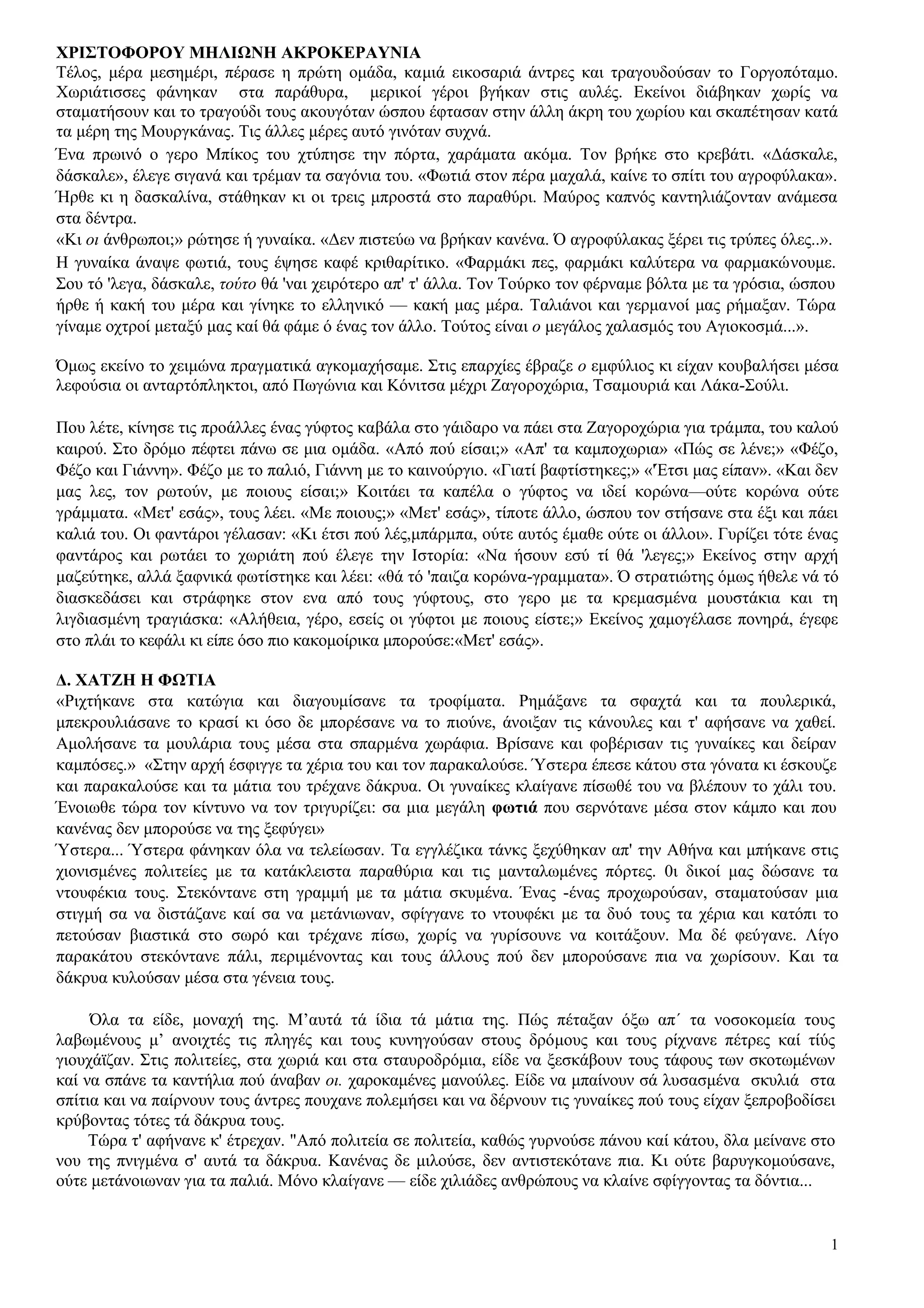 ΧΡΙΣΤΟΦΟΡΟΥ ΜΗΛΙΩΝΗ ΑΚΡΟΚΕΡΑΥΝΙΑ