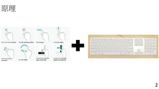 本文探讨了如何在普通物理键盘上启用基于手势的交互,包括按键数据统计和手势示例。此外,文档讨论了人机交互的设计模式,关注人际互动和系统与机器人之间的输入。