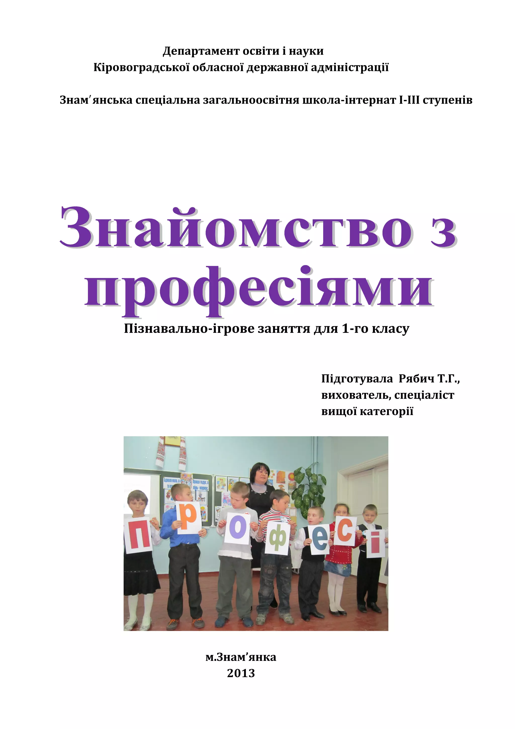 малюнки людей різних професій, роздатковий матеріал, предмети