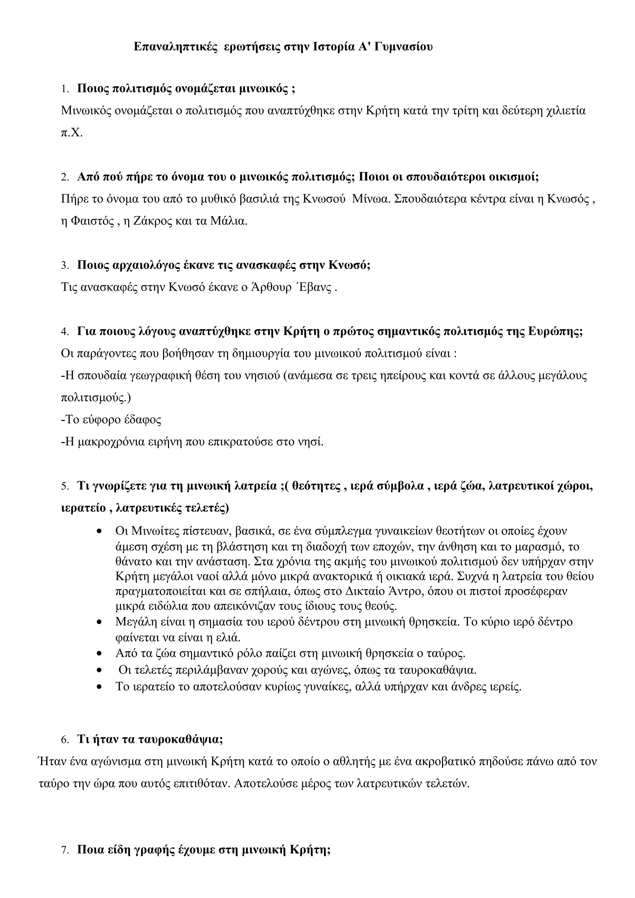 Επαναληπτικές ερωτήσεις στηνΙστορία Α' Γυμνασίου