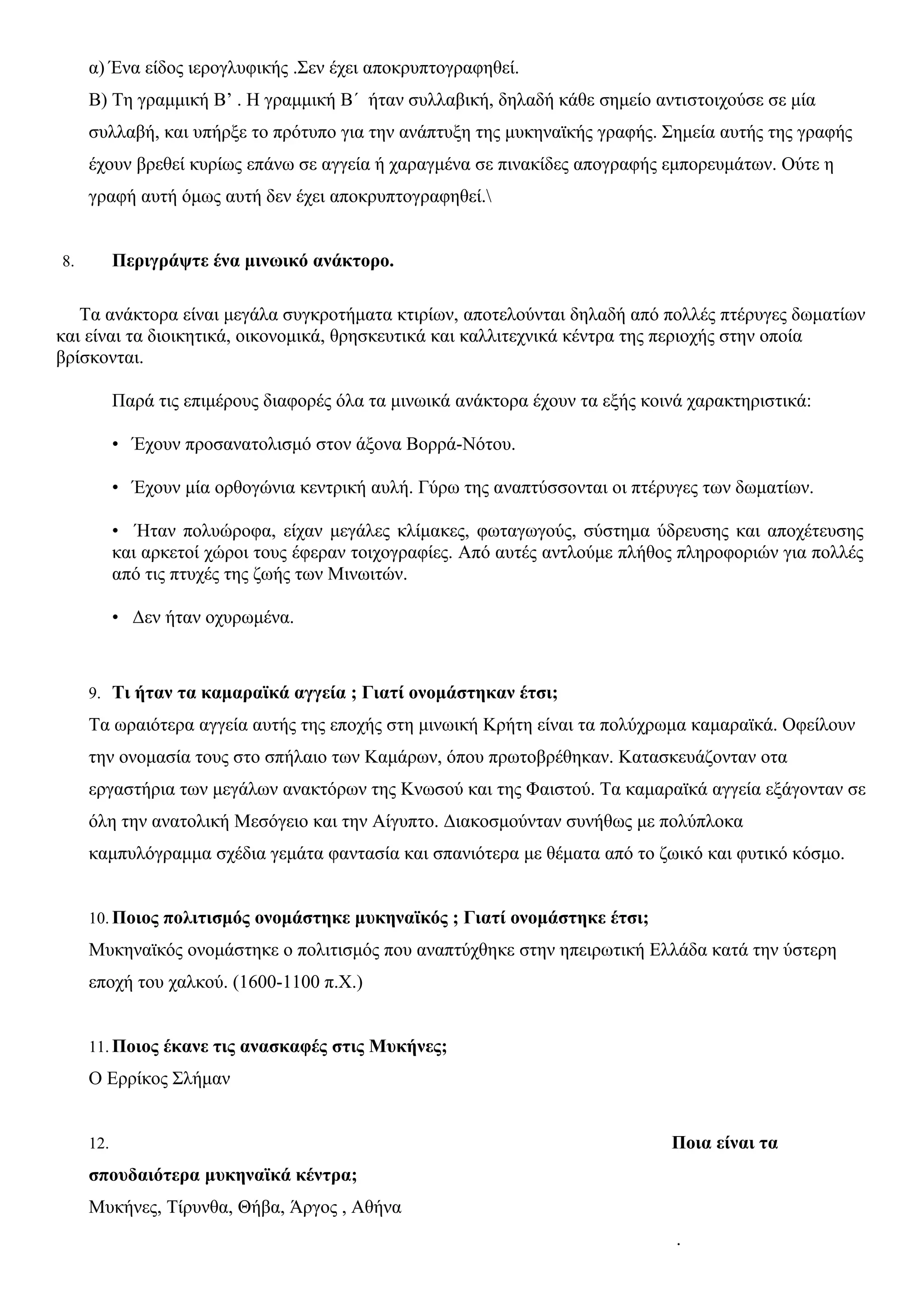 21.Οι μυκηναϊκές ακροπόλεις ήταν οχυρωμένες ενώ οι μινωικοί οικισμοί ήταν ανοχύρωτοι. Σε