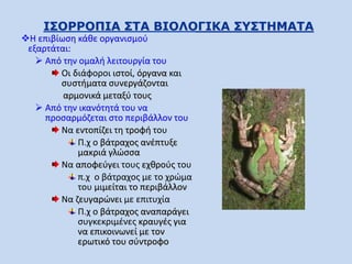 ΙΣΟΡΡΟΠΙΑ ΣΤΑ ΒΙΟΛΟΓΙΚΑ ΣΥΣΤΗΜΑΤΑ