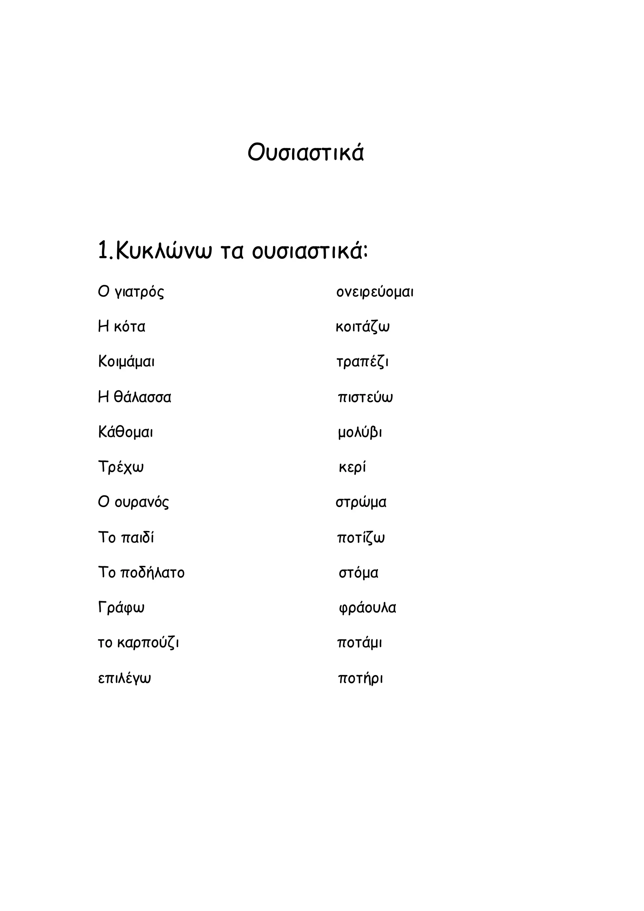 1.Κυκλώνω τα ουσιαστικά: