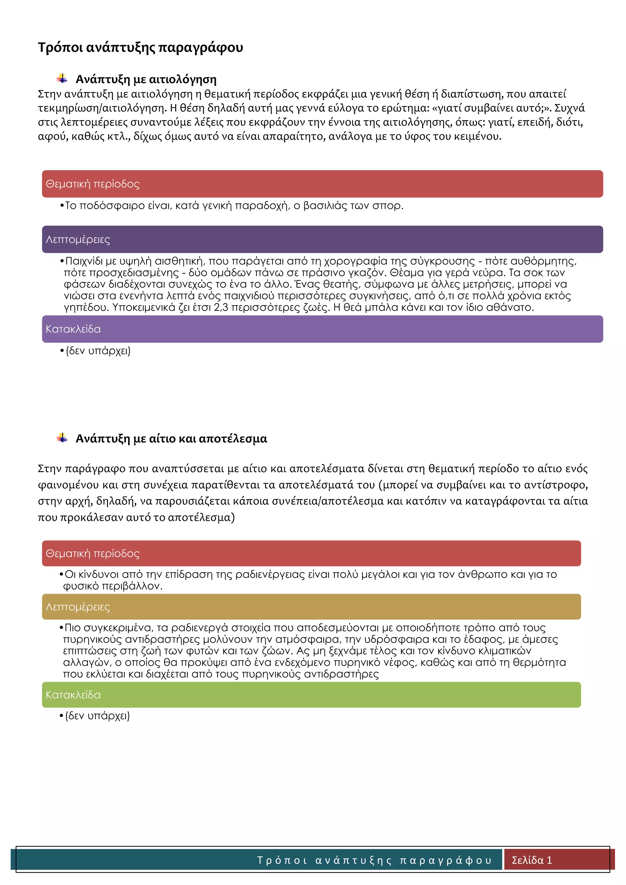 Στην ανάπτυξη της παραγράφου με ορισμό στη θεματική περίοδο αναφέρουμε έναν σύντομο ορισμό για να διευκρινίσουμε την έννοια και στις λεπτομέρειες δίνουμε περισσότερες πληροφορίες.