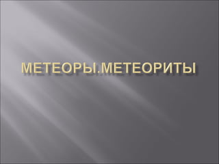 Документ обсуждает метеориты, определяя их как космические тела, которые упали на Землю. Указываются два основных типа состава метеоритов: каменные и железные. Информация представлена с ссылками на страницы учебного материала.