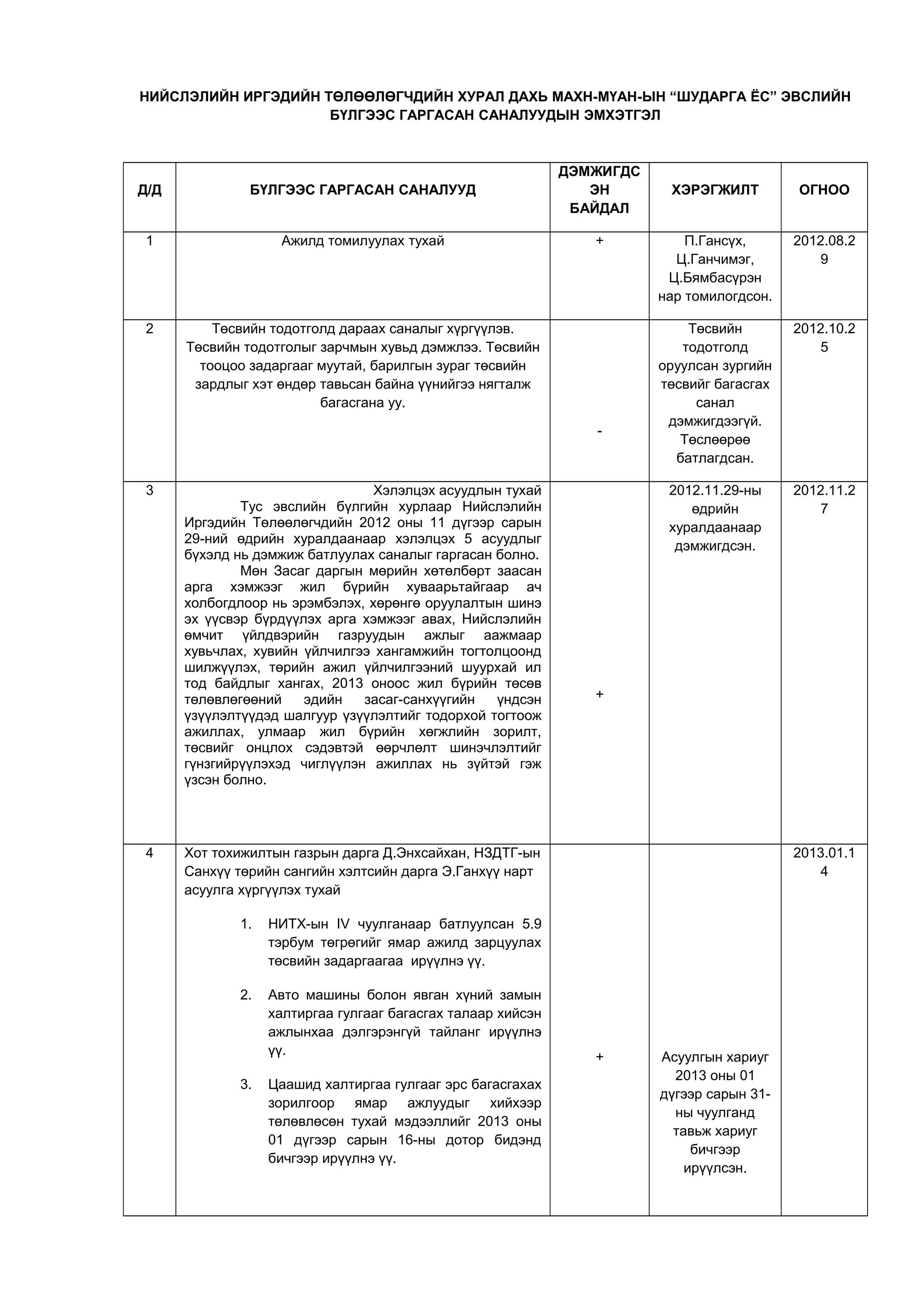 БҮЛГЭЭС ГАРГАСАН САНАЛУУДЫН ЭМХЭТГЭЛ