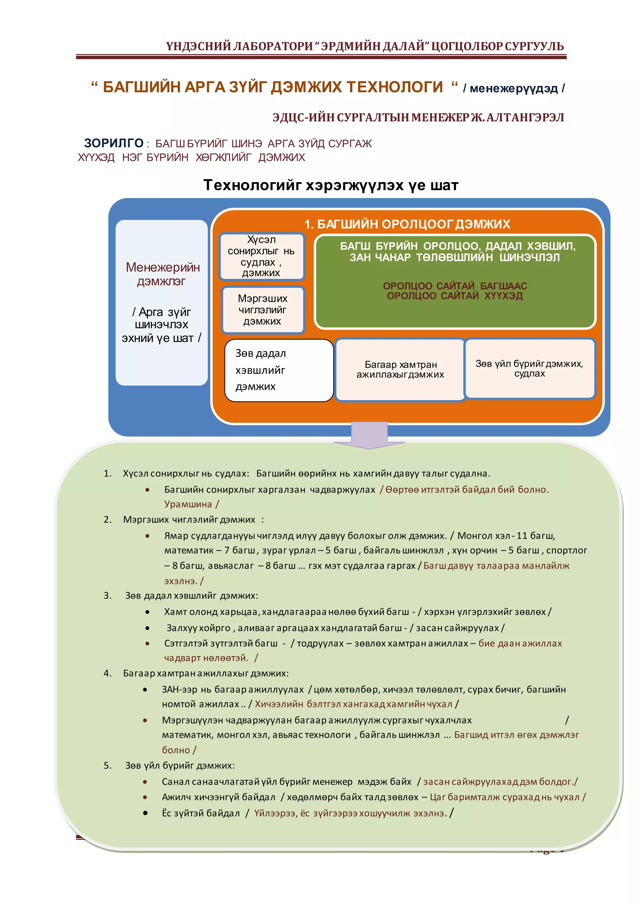 “БАГШИЙН АРГА ЗҮЙГ ДЭМЖИХ ТЕХНОЛОГИ“ /менежерүүдэд / ЭДЦС-ИЙН СУРГАЛТЫН МЕНЕЖЕР Ж. АЛТАНГЭРЭЛ