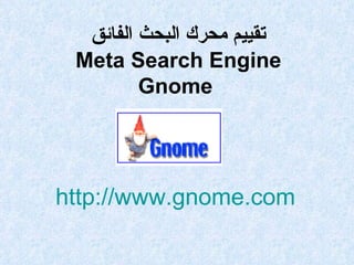 محرك البحث الفائق Gnome يقوم بإرسال كلمات البحث إلى عدة محركات بحث فردية ويعرض النتائج في شاشة واحدة، مما يسهل البحث عبر منصات متعددة. يتيح المحرك استخدام واجهة تفاعل بسيطة للبحث، كما يدعم استخدام العلامات والعبارات المختصرة، ولكن لا يوفر خاصية البحث باللغة العربية أو تحديد تاريخ النتائج. بإجماله، يقدم Gnome تجربة بحث متقدمة دون تقديم الصور أو الوسائط.