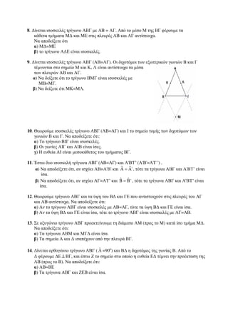 7. Θεωρούμε ισοσκελές τρίγωνο ΑΒΓ (ΑΒ=ΑΓ) και το μέσο Μ της βάσης του ΒΓ. Φέρουμε τις