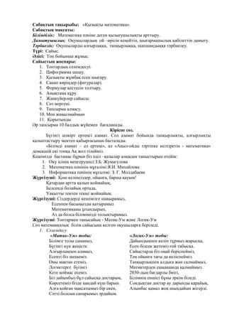 математика» сабағымыз аяқталды.