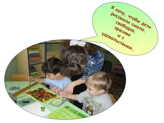 Документ представлен педагогом Потаповой Марией Геннадьевной и описывает методы развития художественно-творческих способностей детей через нетрадиционные техники изобразительной деятельности. Основные задачи включают формирование положительных эмоций от искусства и развитие навыков самовыражения. В документе перечислены разнообразные методы и материалы для художественного творчества, такие как мыльные пузырики и кляксография.