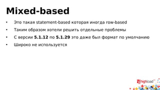 Документ обсуждает асинхронную репликацию в MySQL и PostgreSQL, включая их архитектуры, преимущества и недостатки различных типов репликации. Основное внимание уделяется различиям в журналах и производительности, а также особенностям реализации отложенной репликации в этих системах управления базами данных. Выводы подчеркивают важность выбора правильной стратегии репликации для обеспечения производительности и надежности систем.