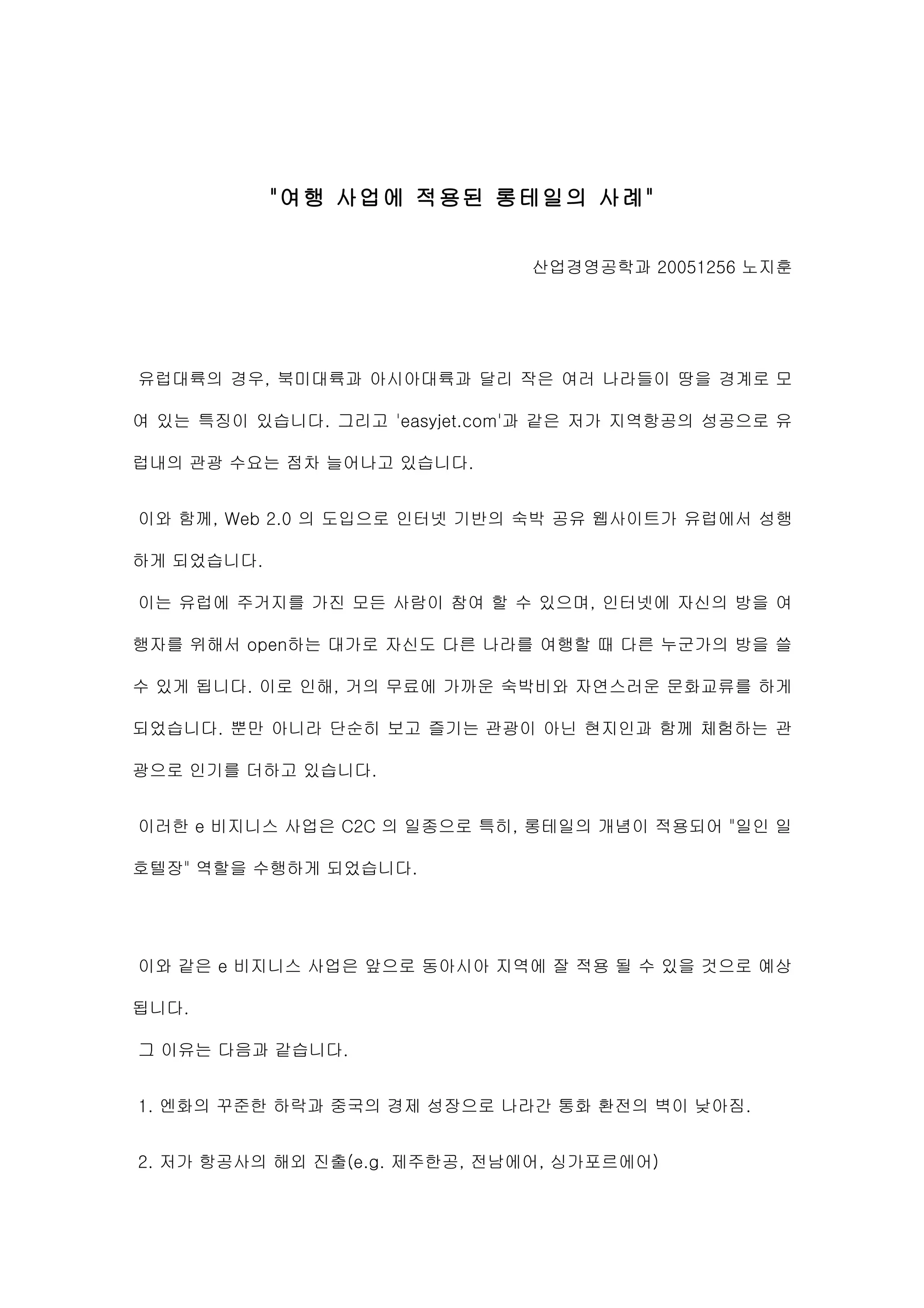 여 있는 특징이 있습니다. 그리고 'easyjet.com'과 같은 저가 지역항공의 성공으로 유