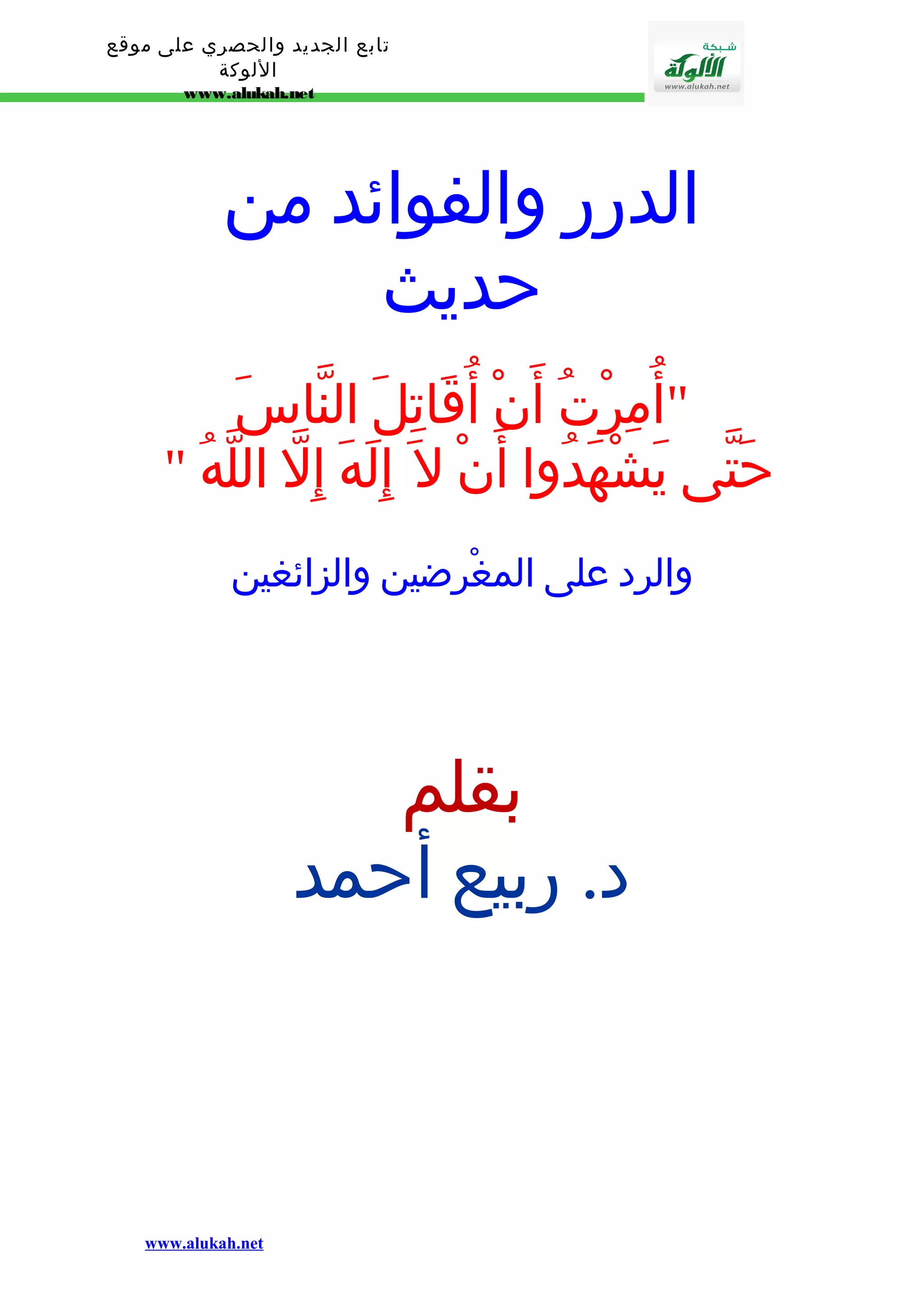 يتناول الوثيقة حديث "أُمِرْتُ أَنْ أُقَاتِلَ النّاسَ حَتّى يَشْهَدُوا أَنْ ل اِلَهَ إِلّا اللّهُ" ويعرض كيفية إساءة فهمه من قبل بعض المغرضين الذين شوهوا معانيه. يشدد على أهمية السنة النبوية وتعليم الصحابة في نقل الدين كما هو، محذرًا من الانتقادات الموجهة لهم. يتضمن النقاش تحديد مفهوم 'الأمر' في القرآن وكيف يرتبط بالوجوب في الدين.