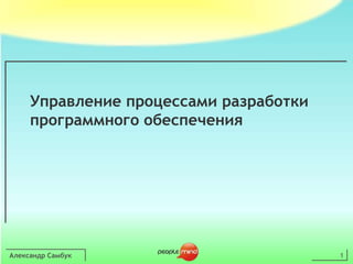 Документ обсуждает управление процессами разработки программного обеспечения, определяя процессы, связанные с продуктом, проектом и организацией. Также рассматриваются атрибуты зрелости и определенности процесса, важность структурированного подхода, а также мифы и заблуждения о процессе. В нем подчеркивается необходимость количественного управления, анализа метрик и согласования бизнес-целей с процессами для повышения эффективности.