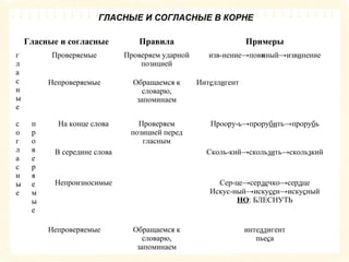 Документ содержит обширные правила правописания гласных и согласных в корне, а также детальные примеры использования ударной и безударной позиции для различных слов. Обсуждаются проверяемые и непроверяемые слова, влияние приставок, суффиксов и исключения в языке. Видео-материалы демонстрируют чередование гласных и разновидности окончаний в разных частях речи.