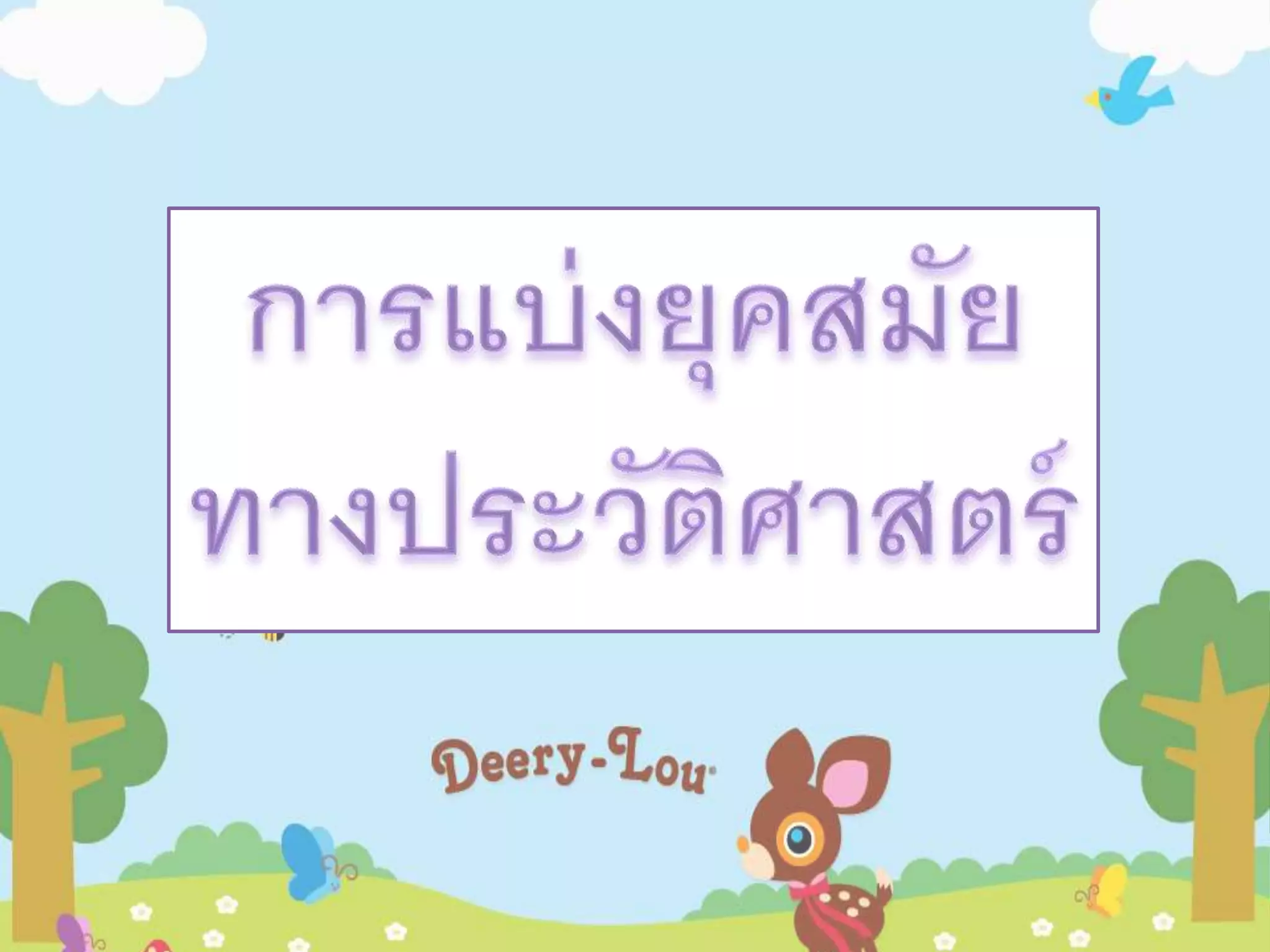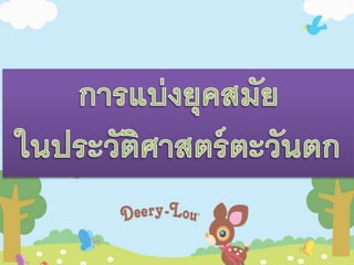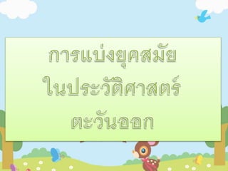 การแบ่งยุคสมัยทางประวัติศาสตร์ จัดทำโดย นส.ธรรมพร ศิริชัย ม.6.1 เลขที่ 10 นส.สุทินา อยู่หลำ ม.6.1 เลขที่ 35