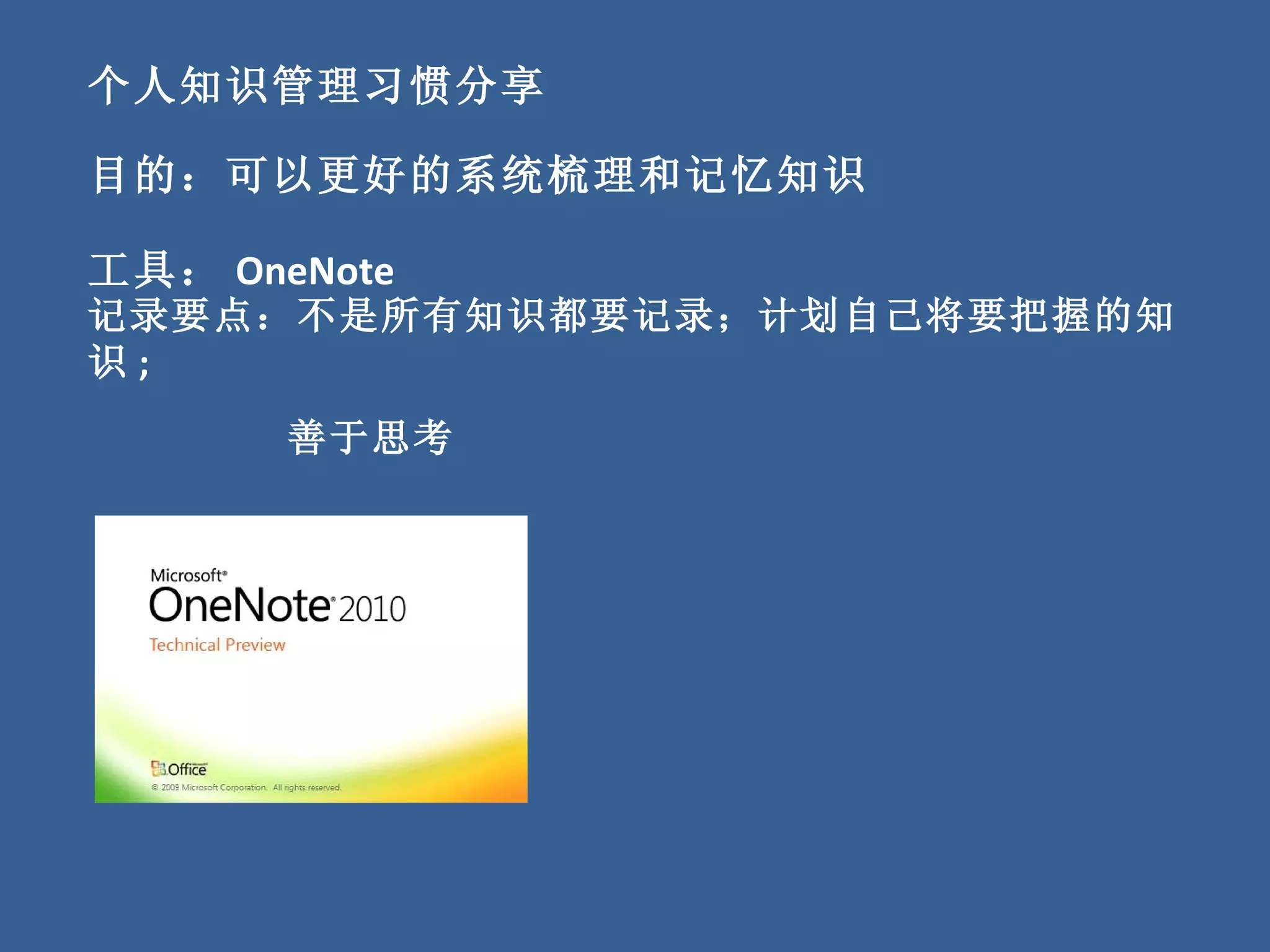 记录要点:不是所有知识都要记录;计划自己将要把握的知识 ; 个人知识管理习惯分享 善于思考