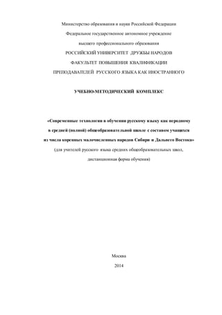 Документ представляет методические рекомендации по обучению русскому языку как иностранному для учащихся из коренных народов Сибири и Дальнего Востока. Основное внимание уделяется разработке технологической карты урока, которая помогает структировать урок по параметрам, таким как содержание, цели и методы. Также описаны сложности в создании таких карт и предложены шаблоны и примеры для учителей.
