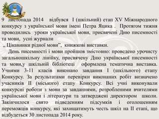 9 листопада 2014відбувся І (шкільний) етап XV Міжнародного