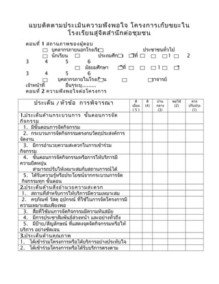 แบบติดตามประเมินความพึงพอใจ โครงการเก็บขยะใน