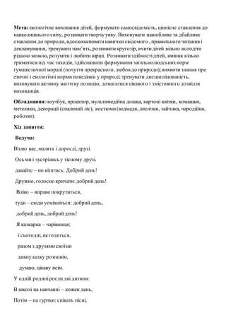 Мета: екологічне вихованнядітей, формувати самосвідомість, ціннісне ставлення до