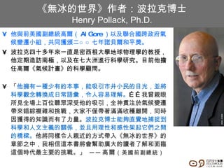 Chapter 3 「 當冰統治世界 When Ice Ruled the World 」 當冰統治世界時,人類只是單純對冰的擴張和消減做反應。 過去三百萬年的冰河時期循環形塑了地球景觀,冰的消長與氣候系統相互影響,迫使渺小的人類不得不學習應付氣候改變和結果。 然而,兩萬年前在地球上還有壓倒性優勢的冰現在不斷減少,人類已經變成這個地球環境大規模改變的主要原因。