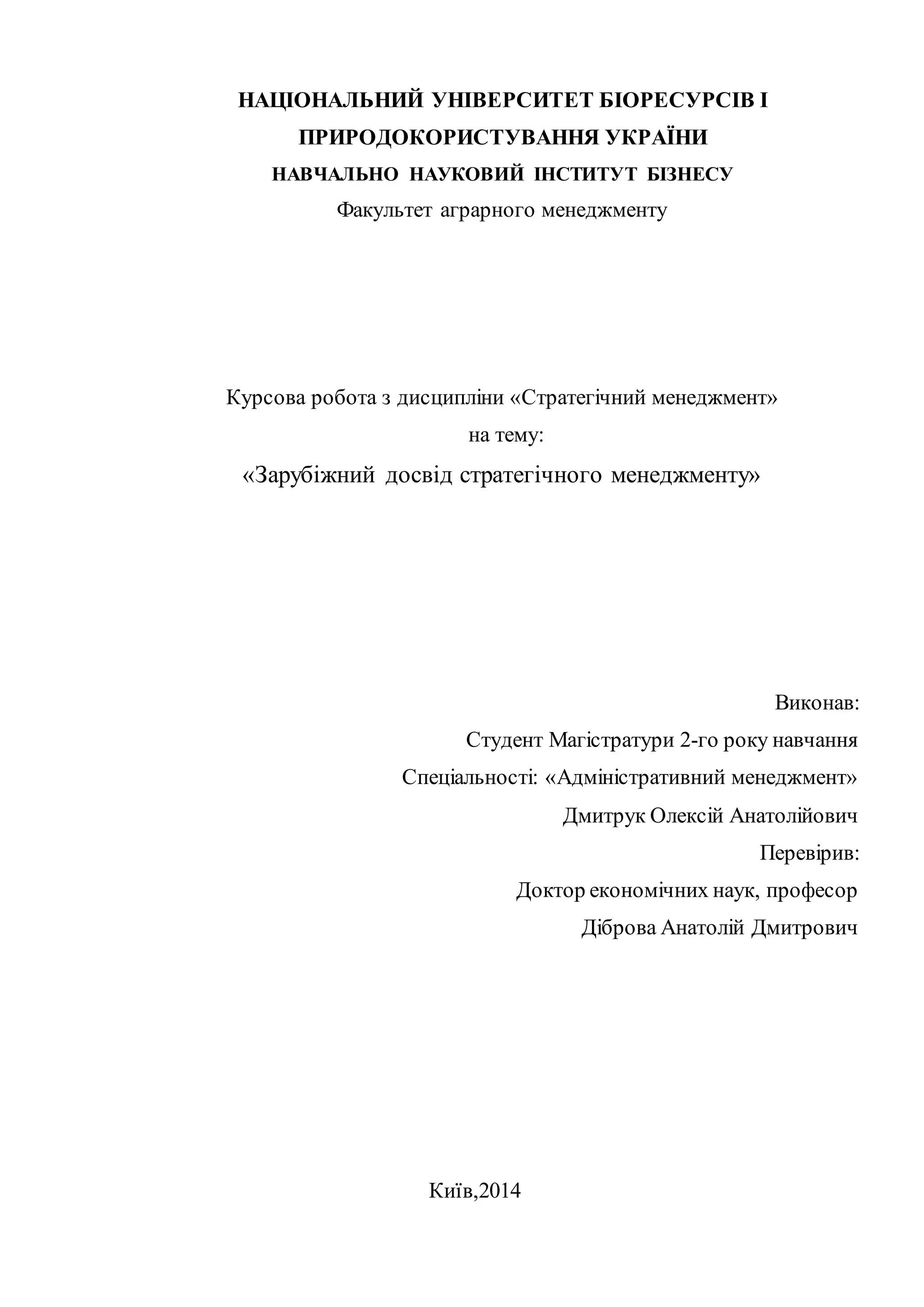 Курсова робота з дисципліни «Стратегічний менеджмент»