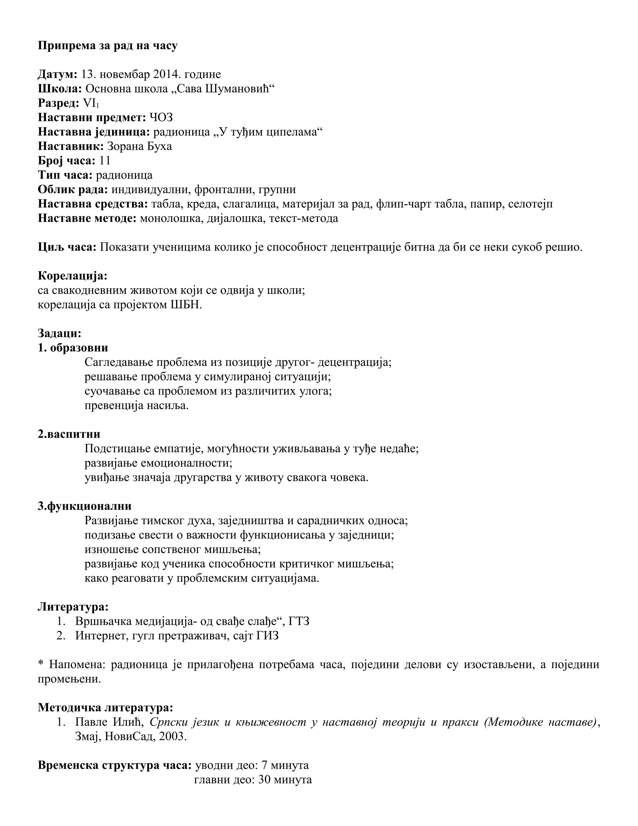 Циљ часа: Показати ученицима колико је способност децентрације битна да би се неки сукоб решио.